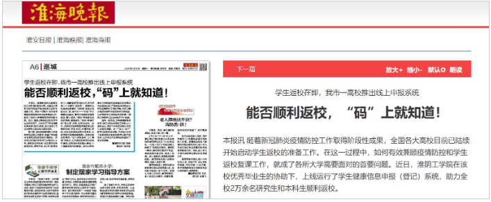 淮安飞鸟科技 助力淮阴工学院复课登淮海晚报头条